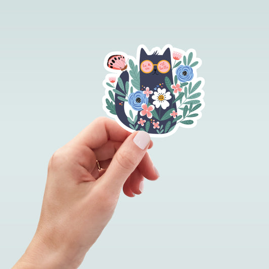 cute cat flowers sticker, la vie est belle, funny stickers, laptop sticker, water bottle sticker, kindle sticker, decals