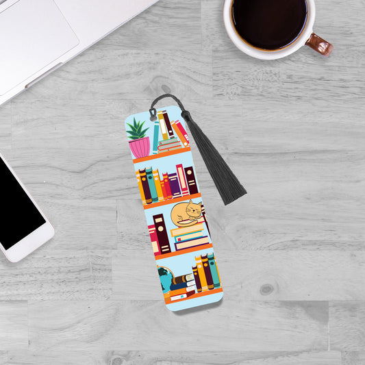 cat and books on bookshelf bookmark, metal bookmark, reading, book lover gift, bookish, cute bookmarks