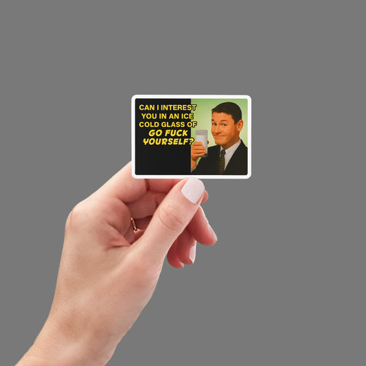 Funny Retro Sticker, Ice Cold Glass of Go F Yourself, Sarcastic Adult Humor Sticker, Rude Gift, Sassy Decal for Laptop or Water Bottle