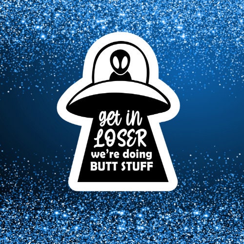 get in loser alien waterproof vinyl sticker, laptop stickers, funny stickers, sarcastic sticker, funny gift, snarky sticker