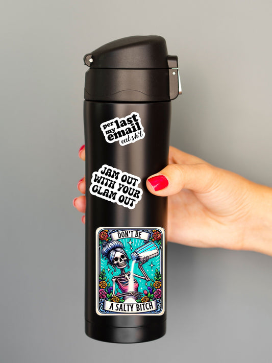 salty b*tch skeleton tarot, book laptop decals, water bottle stickers, funny stickers, book stickers, planner stickers, kindle stickers
