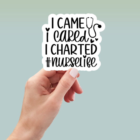 i came i cared i charted sticker, nursing sticker, laptop stickers, funny sticker, best friend gift, funny gift, nurse graduation gift